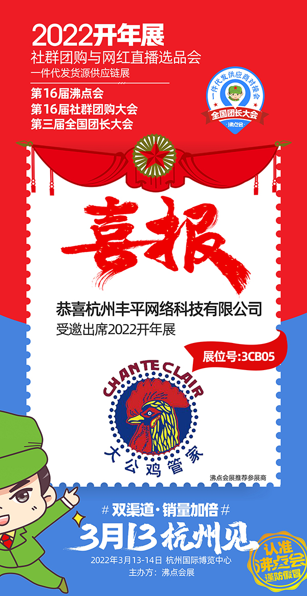由沸点会创办的“全国团长大会”第二届万人团长大会2021年12月6-7日,在福建厦门成功举办,下一届,2022年3月13-14日,在杭州国际博览中心举办。此次活动是全品类综合展,一次可以链接上美食、美妆、母婴、零食、服装、百货、小家电、特产生鲜等各类适合社群团购和直播电商的一件代发一手货源。届时,杭州丰平网络科技有限公司受邀参展!