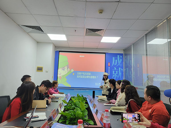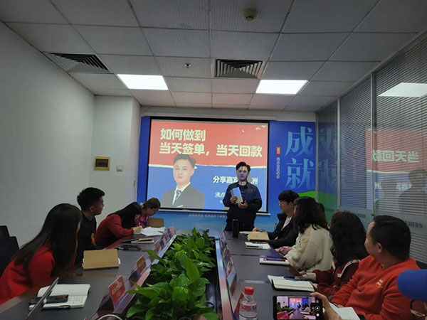 接着是经验分享环节:郭浩分享了自己如何在心态不好,业绩落差很大的情况下,如何设定目标,把握优势,实现业绩突破,并成为2021年年度冠军的;