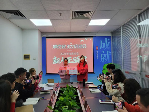 在2022启动会上,还对2021年度沸点销售冠军,以及2021年度沸点会新人王进行了颁奖。