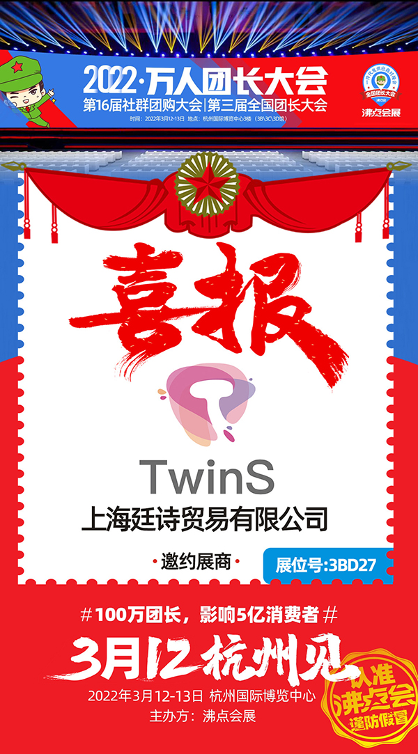 上海廷诗贸易有限公司首次参加沸点的活动,希望除了网络上的虚拟对接之外,有机会与更多团长面对面沟通。3月12—13日,上海廷诗贸易有限公司与您相约杭州国际博览中心3BD27展位,期待和大家一起变得更好!