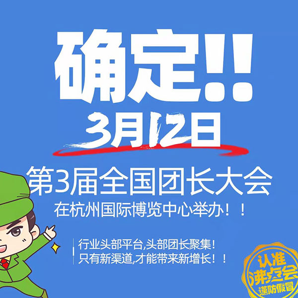 3月12号,杭州国际博览中心,第3届全国团长大会,想要拓展新渠道,实现销售增长的你,一定要来。