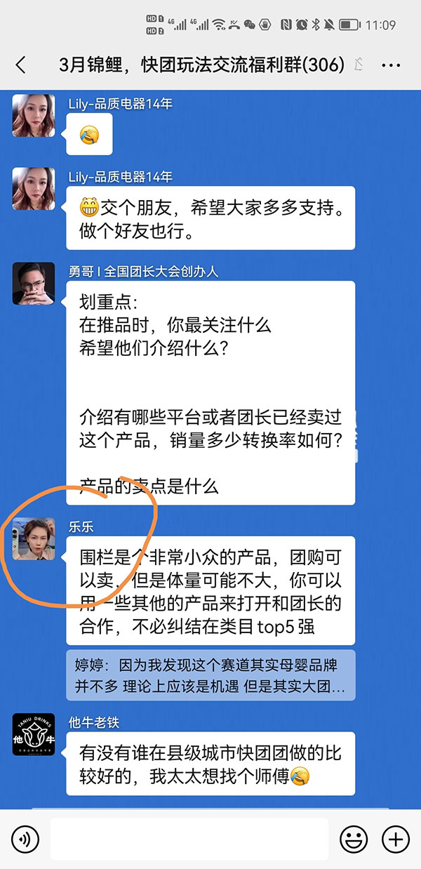 比如,今天群里讨论的题目是:我想成为快团团帮卖,但是大团长都要求群成员超过300或500,我该怎么办?