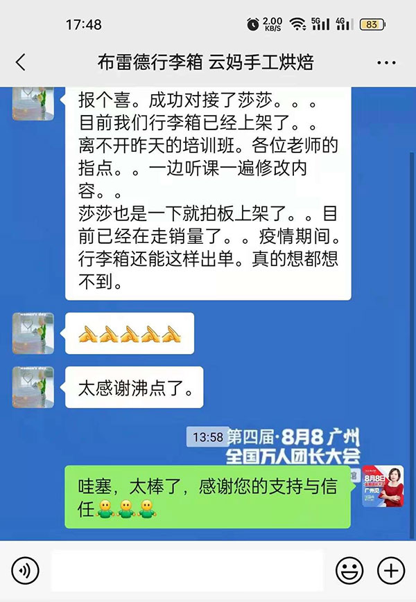 课程结束后,俞总又反馈:经过课程上老师的指点以及同学的帮助,目前行李箱已经上架了,目前已经在走销量了。疫情期间行李箱还能这样出单,真的想都没想到…