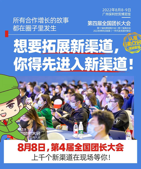 8月8,第4届全国团长大会暨第17届社群团购展将在广州保利世贸展览馆举办,想要拓展新渠道的你,一定要来。