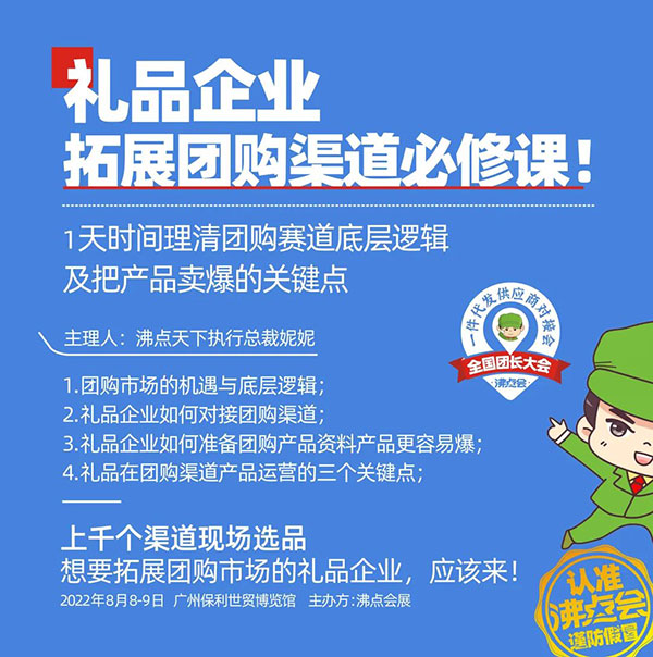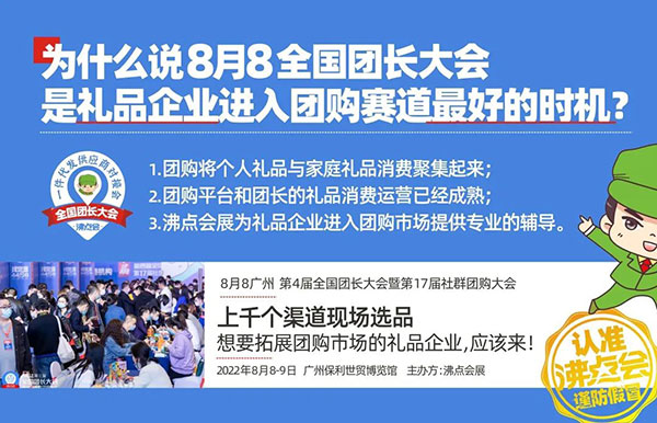 8月8广州,第4届全国团长大会暨第17届社群团购大会,社群团购平台及各工具平台团长聚集,上千个渠道现场选品,想要拓展个人消费市场,进入团购市场的礼品企业,一定要来!