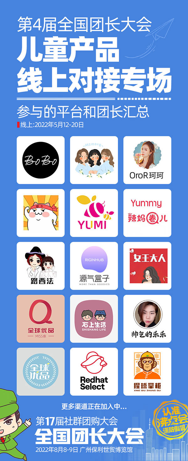 对了,最近参加第4届全国团长大会,还有机会参加我们的儿童产品线上对接专场,已经有超多头部团长和平台报名来选品了,你也赶紧来报名吧!