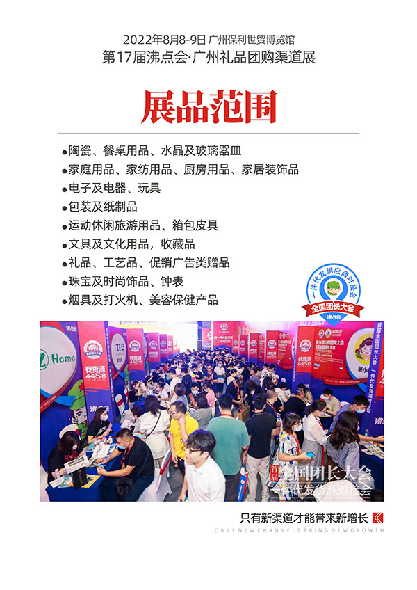 为此,沸点会展在本次8月8广州全国团长大会期间,本着“助力礼品企业拓展团购渠道,实现销售增长”的目标,将从渠道资源赋能,经验方法赋能,到趋势赋能等多个维度,助力礼品企业把握团购渠道的个人礼品需求,及家庭礼品需求这波机遇。