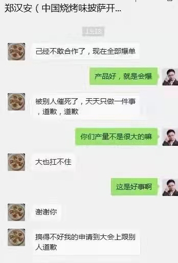 汉帝披萨也是如此,展会上让大家现场试吃,活动结束后好多团长开团,2022年2月份,负责人还在跟勇哥反馈展会效果太好,生产已经跟不上了。