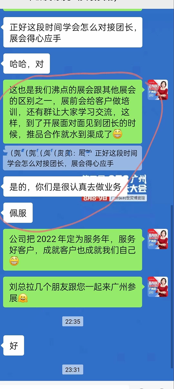 正如江国燕江总所说:2022年是沸点会展的服务年,展前就给客户做服务,助力客户整理好产品笔记,学会如何对接,如何把产品卖得动卖得好卖得久。
