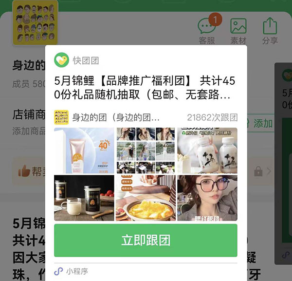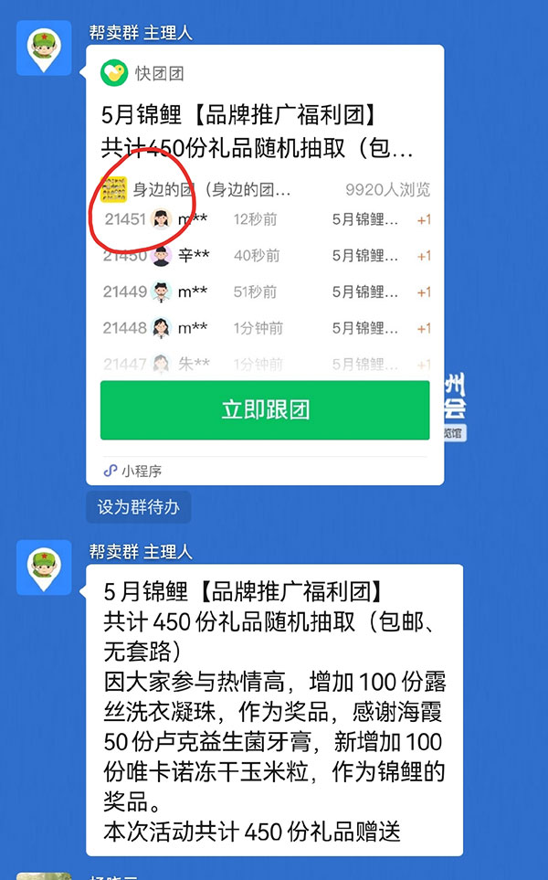 如果你是帮卖团长,想要建立自己的社群,可以通过锦鲤活动里的抽奖福利,把身边的人聚集起来…