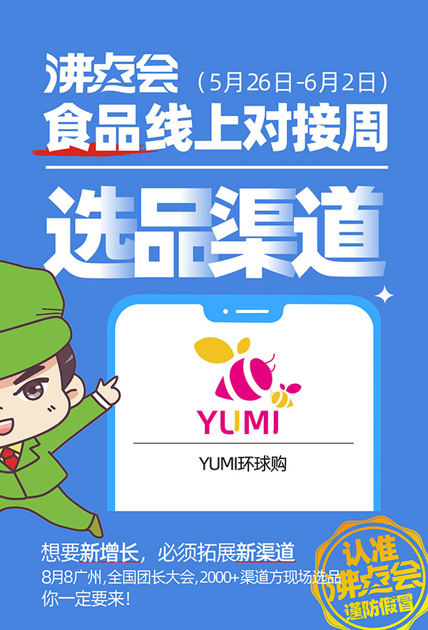5月26日-6月1日,为助力食品企业精准对接社群渠道资源,把握社群食品品类的销售增长机遇,沸点会展特打造【沸点会.食品对接专场】。目前,YUMI环球购确认出席沸点会·食品线上对接周。